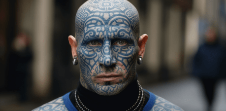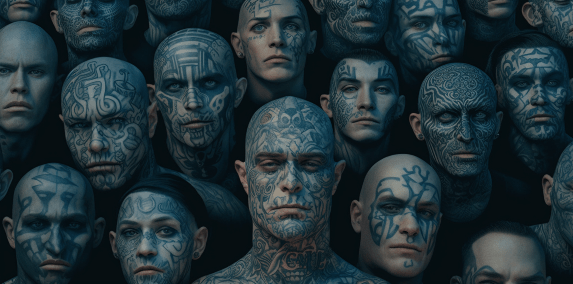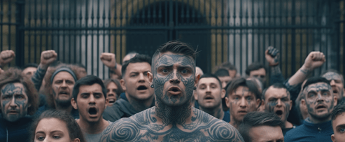 These fans are established as Darth Maul-like figures, with faces tattooed or painted in blue-tinted swirling patterns.